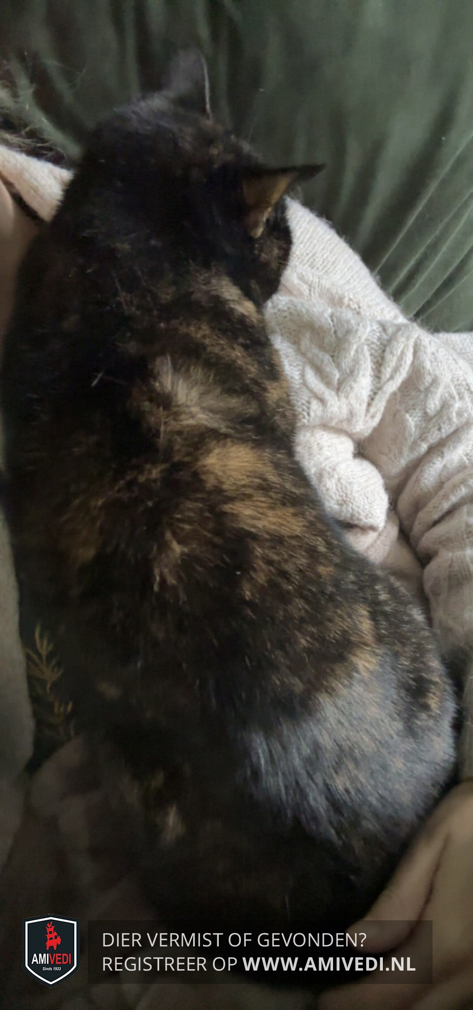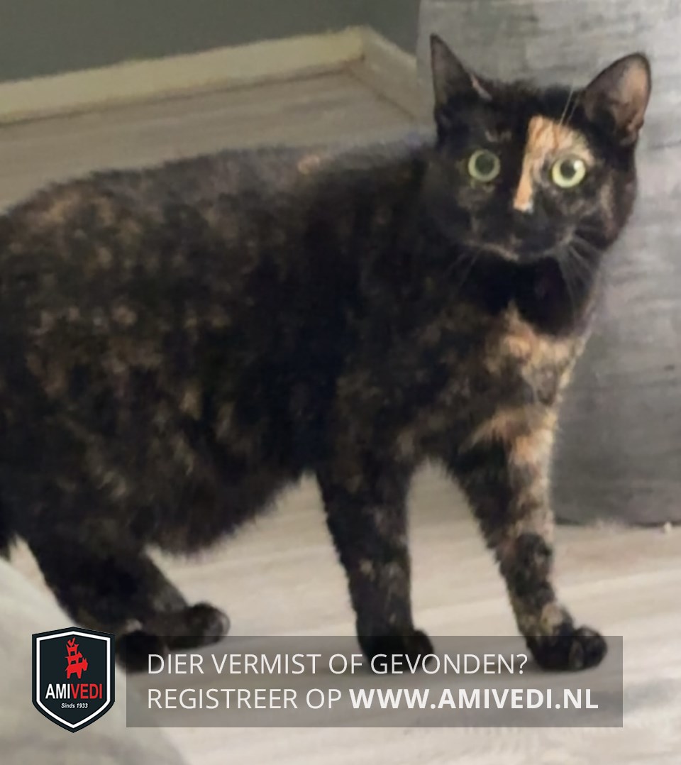 | Signalement | Loena is een kleine Schilpadpoes. Zwart/rood gemêleerd met boven linkeroog rood/oranje vlek die doorloopt over neusje (P vorm). Links op borst en linker voorpoot wat meer rood zichtbaar. |