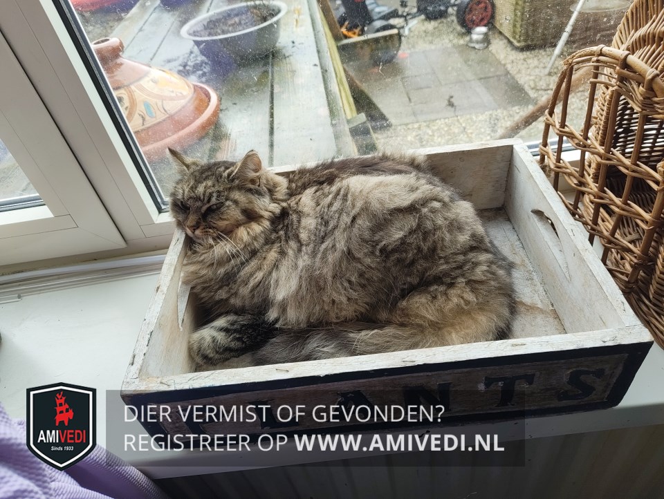| Signalement | Klein poesje met een klein hoofdje. Volle staart. Erg schuw |