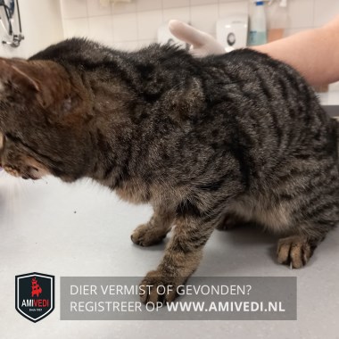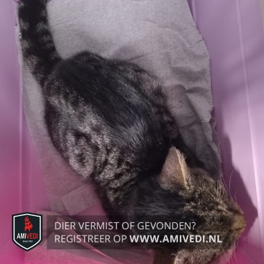 | Signalement | Volledig bruin/grijs cyperse volle kater. Lichte wangetjes en licht buikje. Bruine neus. Witte snor- en tastharen. Sneetje in rechteroor. Lief en zachtaardig karakter. |