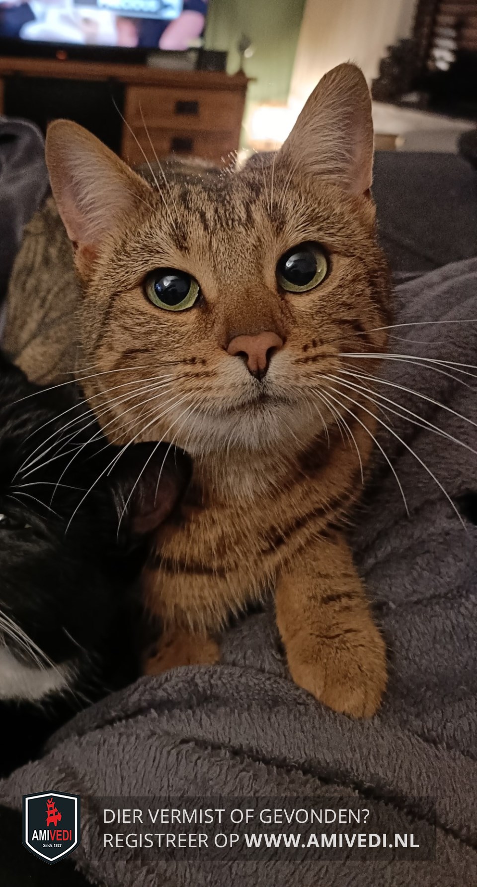 | Signalement | Cypers bruin-zwart gestippeld. |