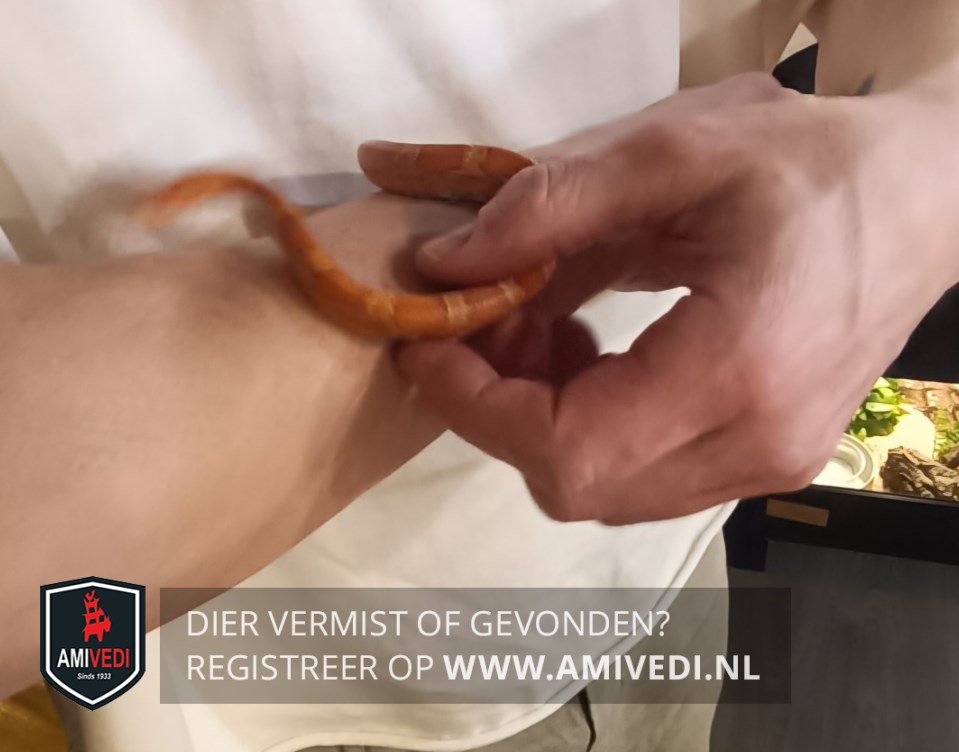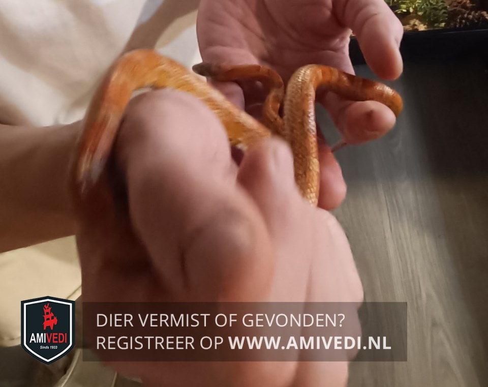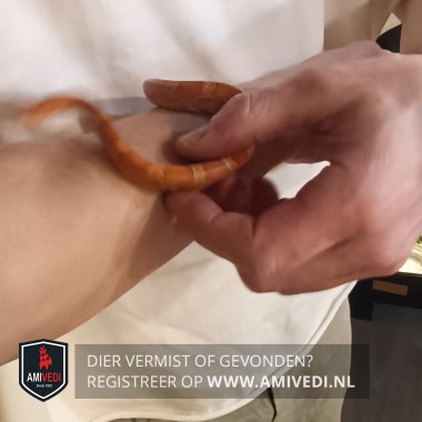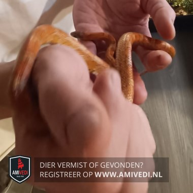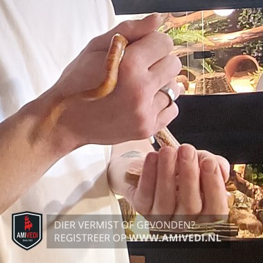| Signalement | 'Sunkissed' rattenslang geel/bruin/rood geringd. Niet gevaarlijk, niet giftig en erg schuw. +/ 45 cm lang +/ 1 a 1,5 cm dik |