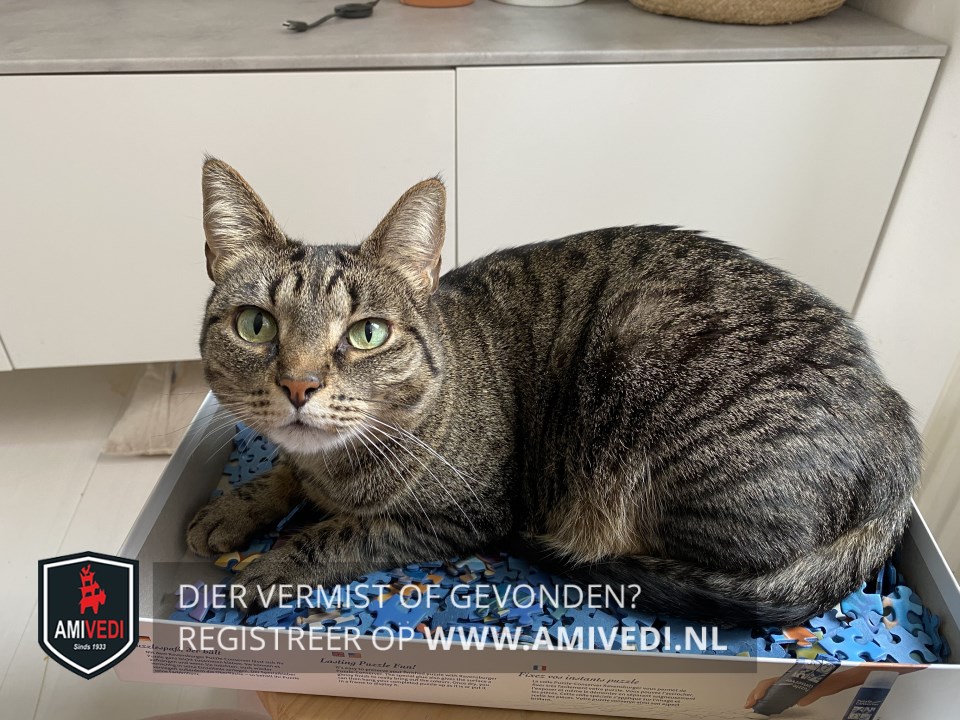 | Signalement | Beetje wit onder de neus, witte kin. Verder geheel cypers bruin-zwart. |