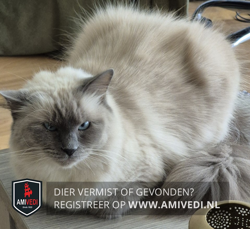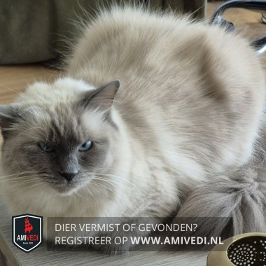 | Signalement | Beige colourpoint Ragdoll met hoofdzakelijk in het gezicht bruin, oren bruin, staart bruin en bruine poten. Blauwe ogen. |