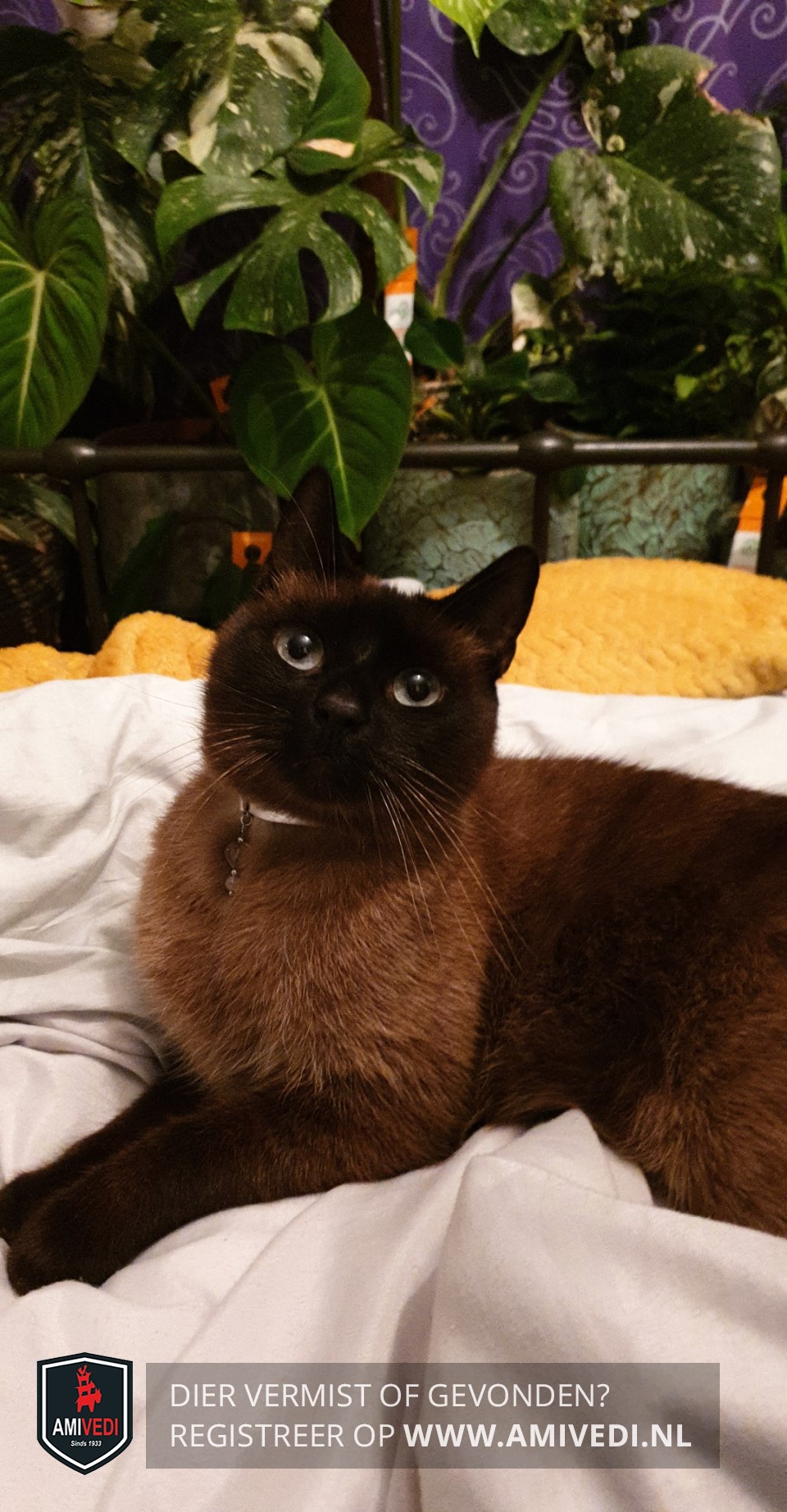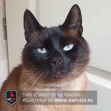 | Signalement | Zwarte/chocolade bruine oren en snuitje. Fel blauwe ogen. Witte bef. Beige lijf. Zwarte/chocolade bruine pootjes en staart. Vriendelijk, zachtaardig en voorzichtig. |