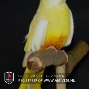 | Signalement | 2 Splendid parkieten, voornamelijk geel, wit kopje, rood/oranje onderop de buik. Witte zijvleugels. |