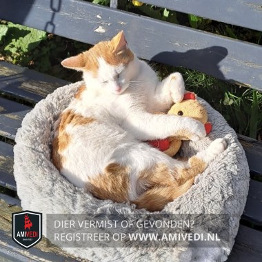 | Signalement | Oranje oren. De letter G in het oranje op zijn rug en een oranje geringde staart. |