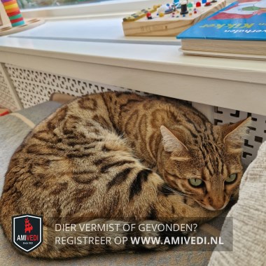 | Signalement | Bengaal, Bruin met zwart, panterachtige stippende vacht, streepjesstaart. |