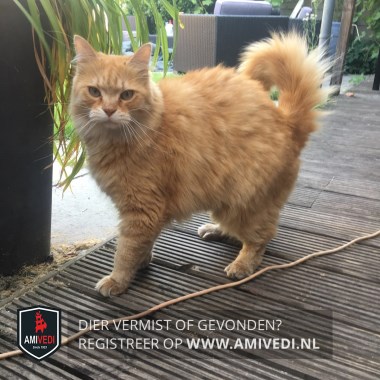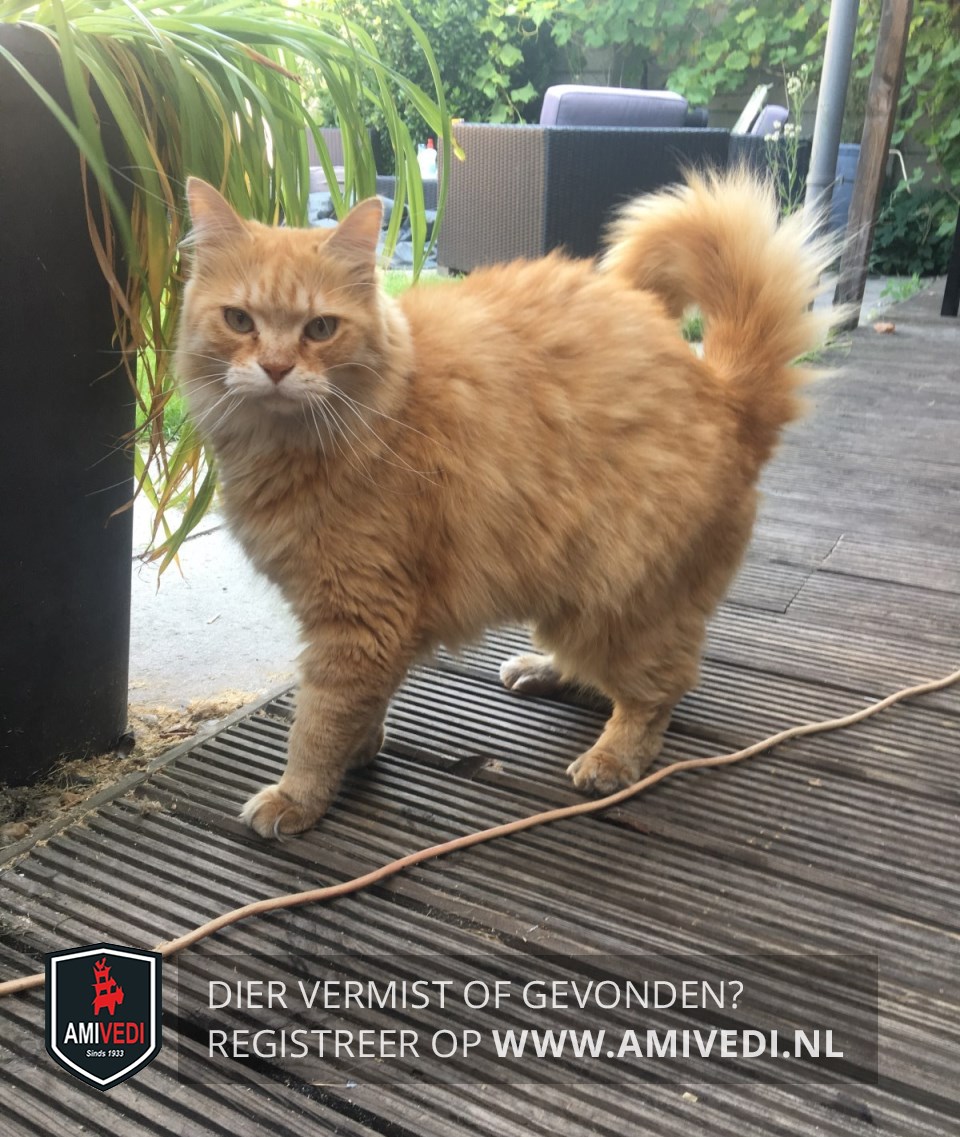 | Signalement | Kruising Maine Coon / Noorse boskat in rood cypers. Lichte snorharen en lichtere vacht rond neus, kin en bij de bef |
