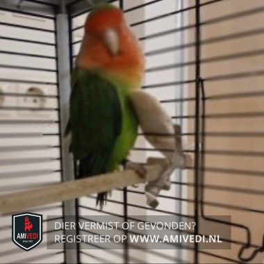 | Signalement | Overwegend groen lichaam, oranje/rode kop, lichte wit/beige borst en snavel licht van kleur korte staart, opvallend felgekleurde kop |