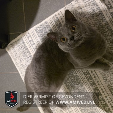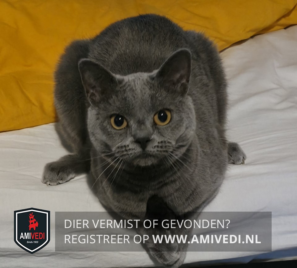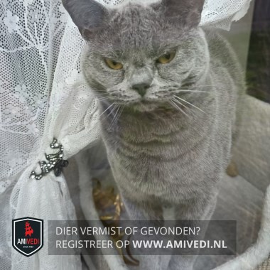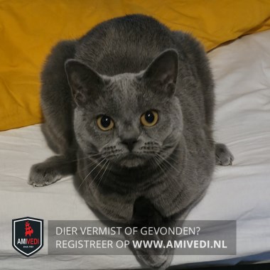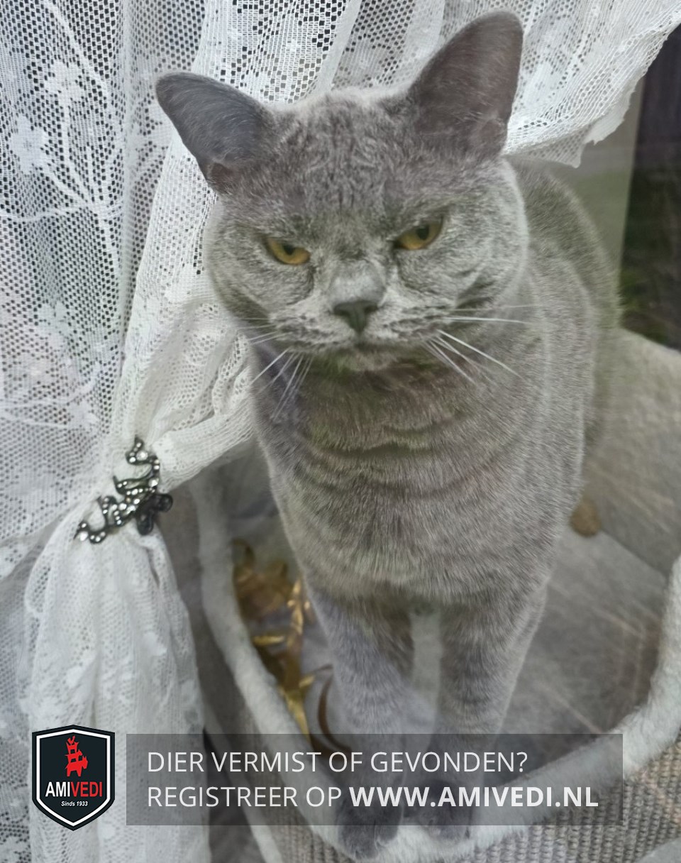 | Signalement | Egaal grijze dikke vacht, amberkleurige ogen. |