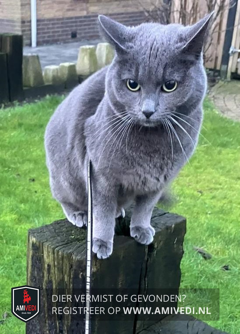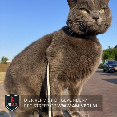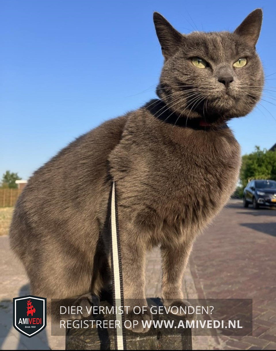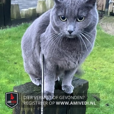 | Signalement | Grijze pluizige kat. |