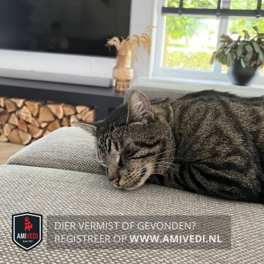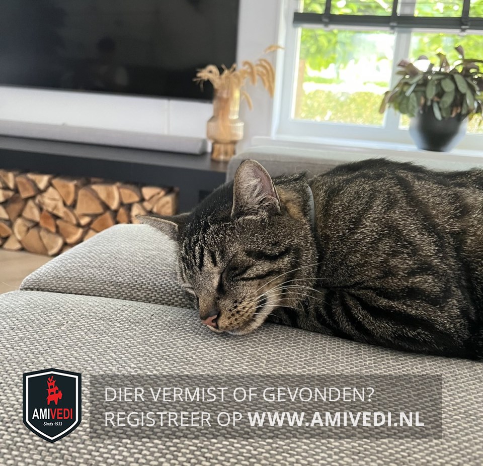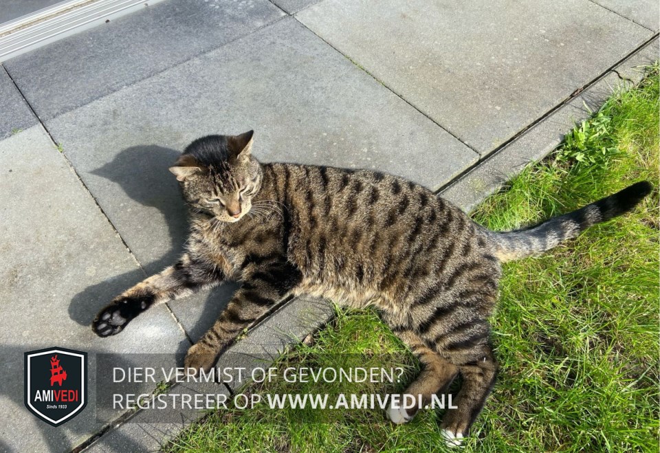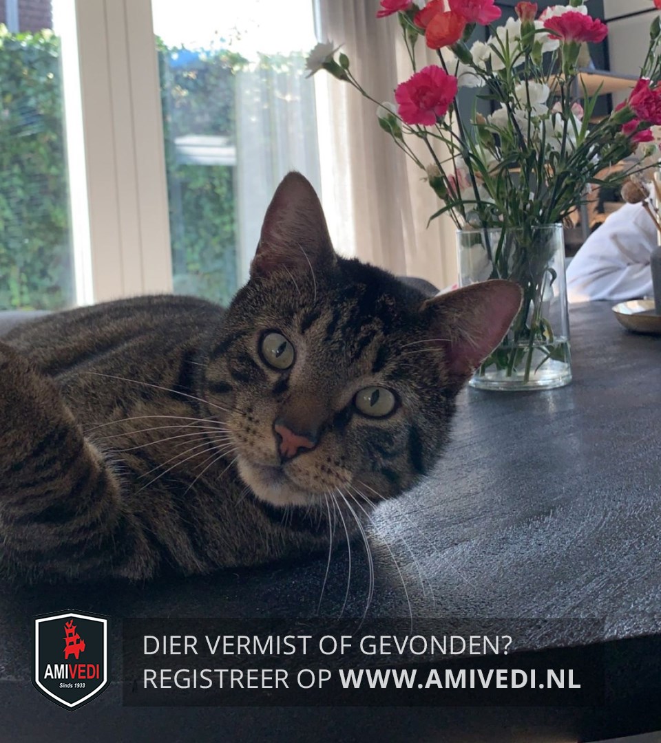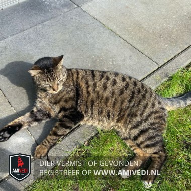 | Signalement | Volledig cypers bruin/zwart gestreept. Slanke kat. Lichte kin. Achterzijde pootjes bij de voetjes zwart. Beide achterpoten witte teentjes. |