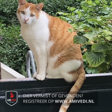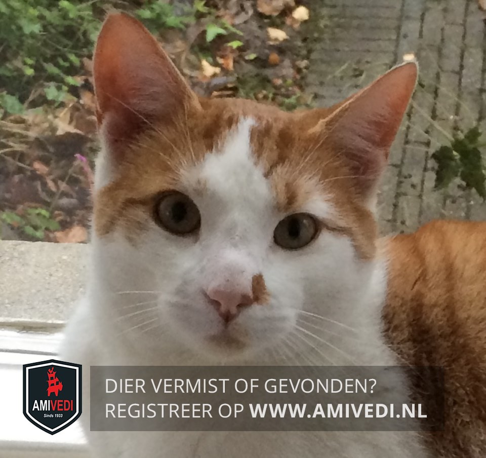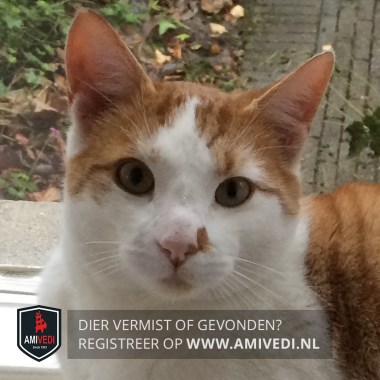 | Signalement | Witte kater met een cypers rood gestreept petje op, witte bles en witte snuit, op zijn snuit zit naast zijn neus een rood vlekje. Witte bef, borst en onderkant, witte pootjes en een cypers rood gestreepte rug en staart. |