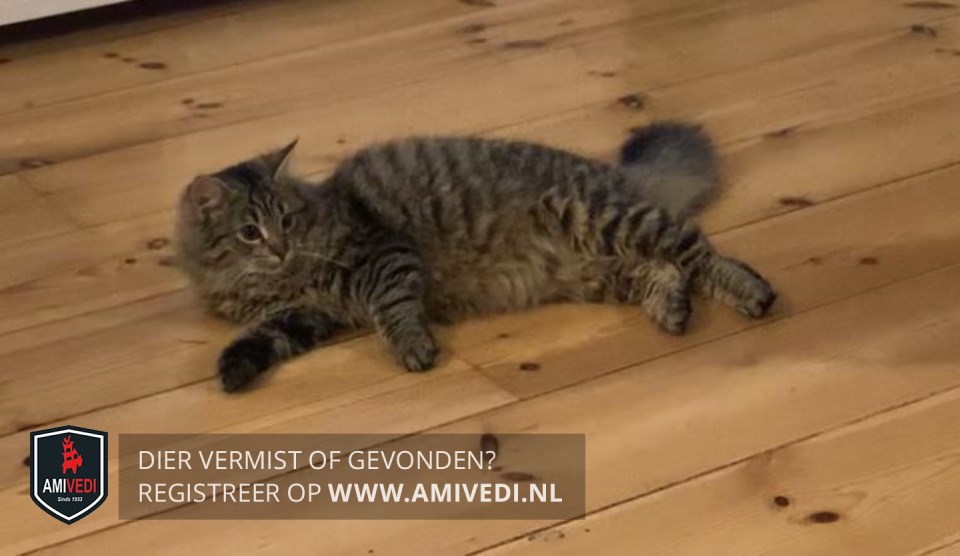 | Signalement | Cypers bruin/grijs/zwarte poes, halflange tot lange vacht. Volle, pluizige staart. Licht randje om de oogjes. |