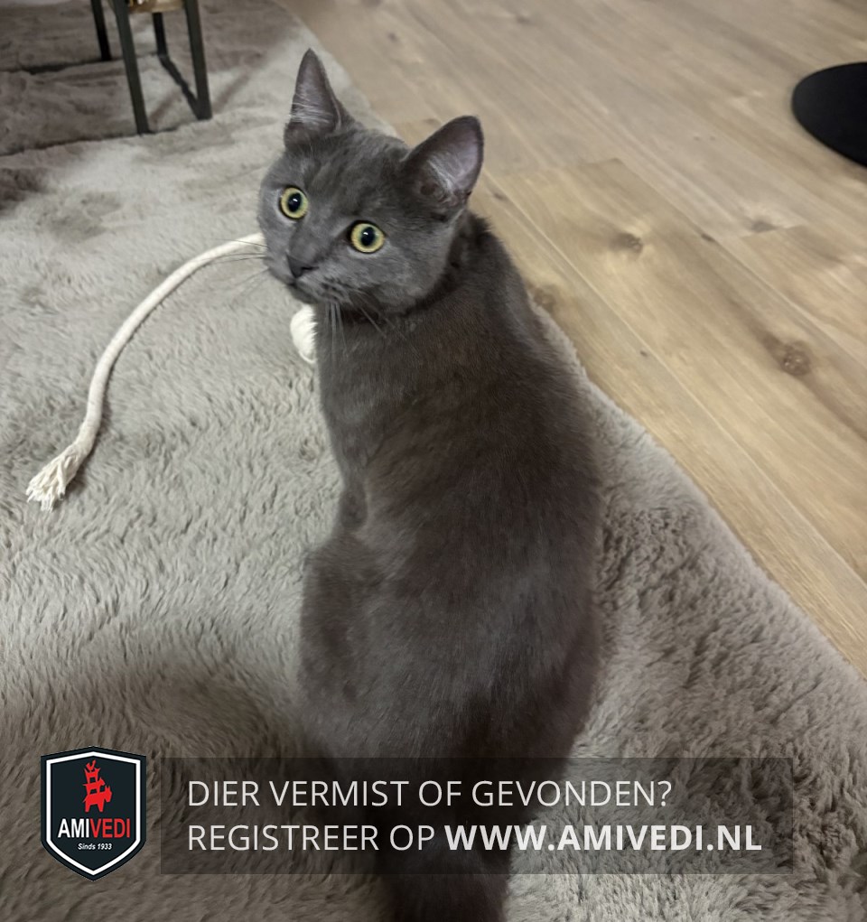 | Signalement | Dikke egaal grijze vacht, groene ogen. |