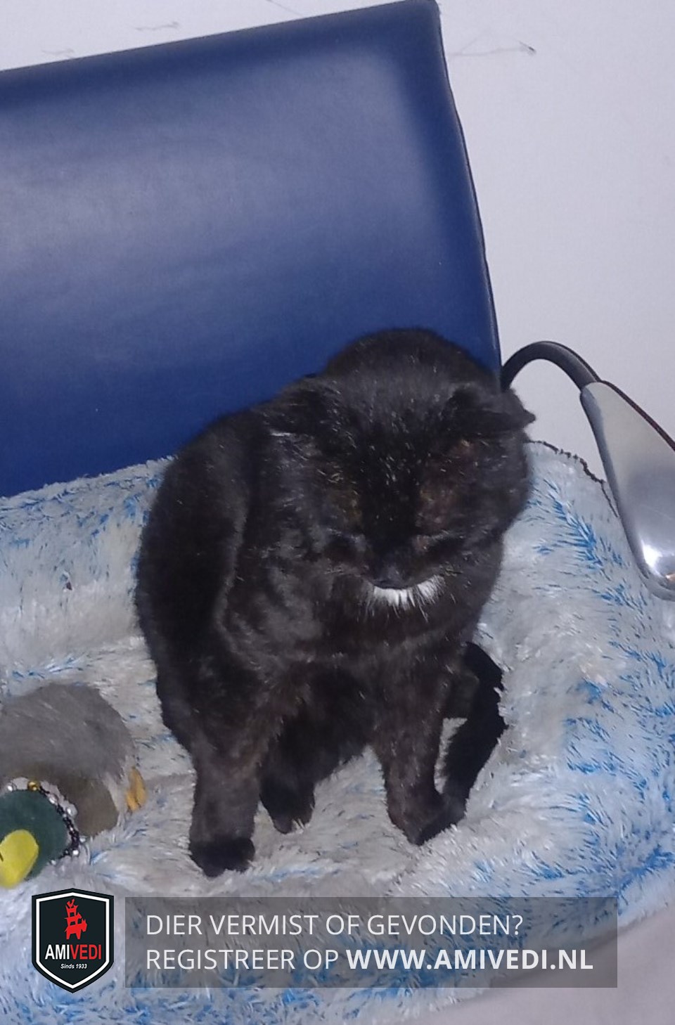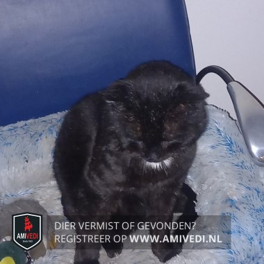 | Signalement | Oude zwarte kat met klein wit plukje op ze borst. ! Hij is erg mager |