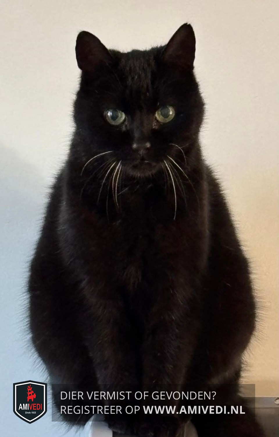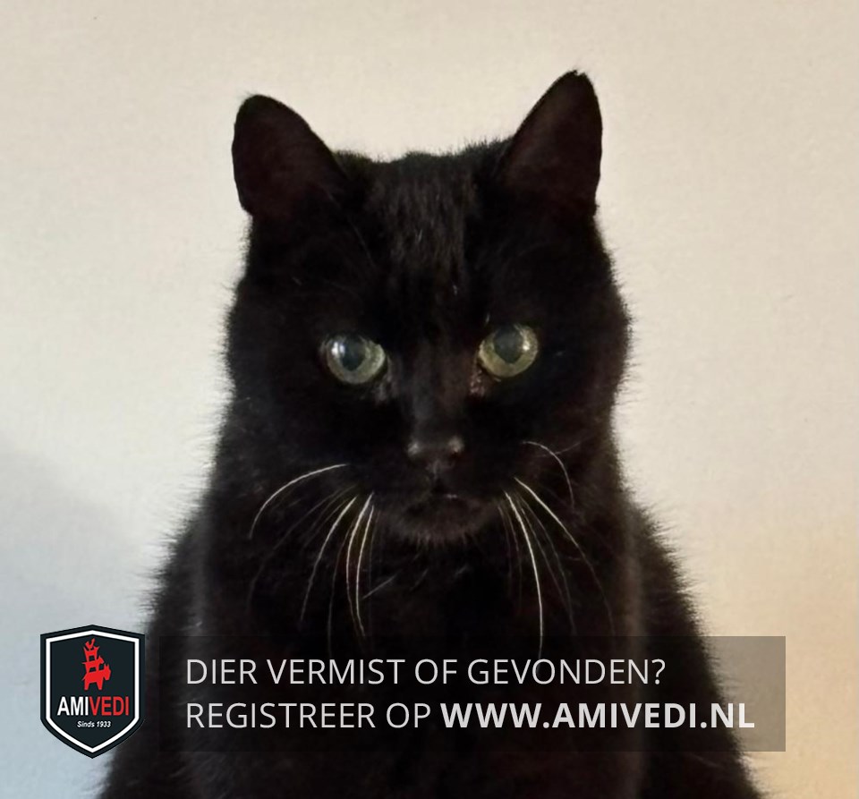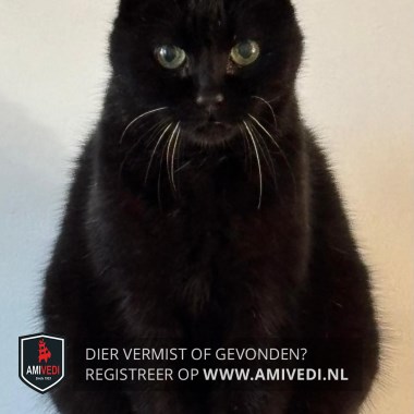 | Signalement | Oude kat met staar. Heeft zeer grote pupillen en is zeer slecht ziend. Verder is hij zwart met af een toe grijze haartjes er tussen door en witte snorharen. |