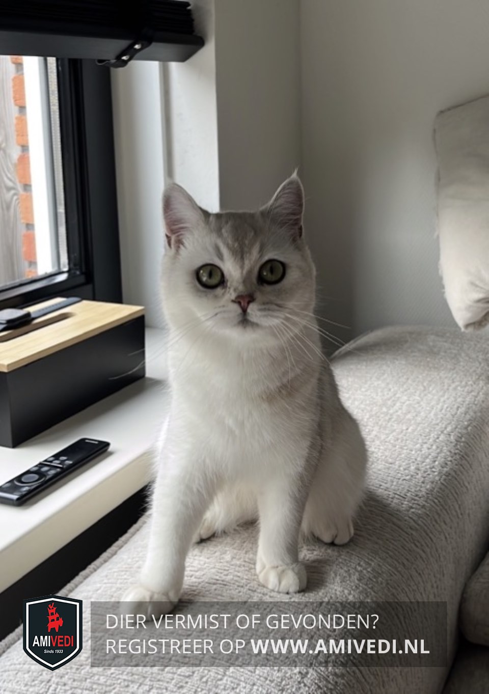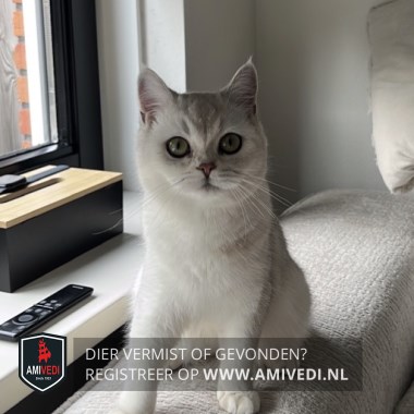 | Signalement | ze is wit met een beetje grijs erdoorheen (heel lichtjes grijs), ze is relatief klein. ze reageert op der naam. Moet snel naar huis want is buiten niet bekend. |