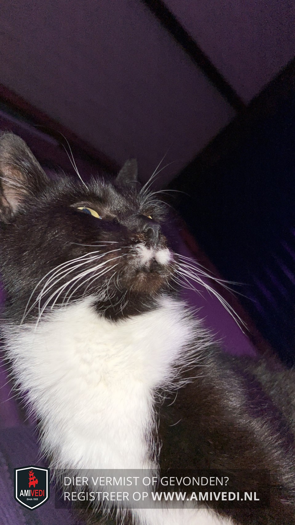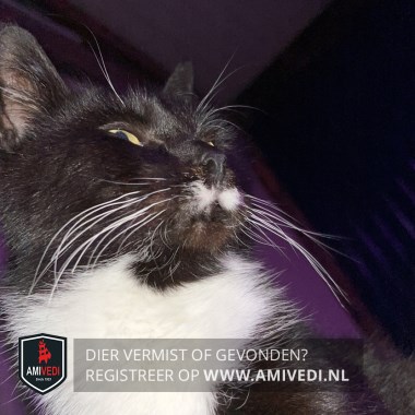 | Signalement | Zwart met witte snor en witte snorharen, witte bef en borst, wit op buik en witte voetjes. |