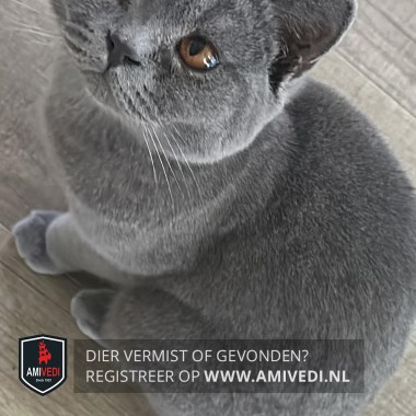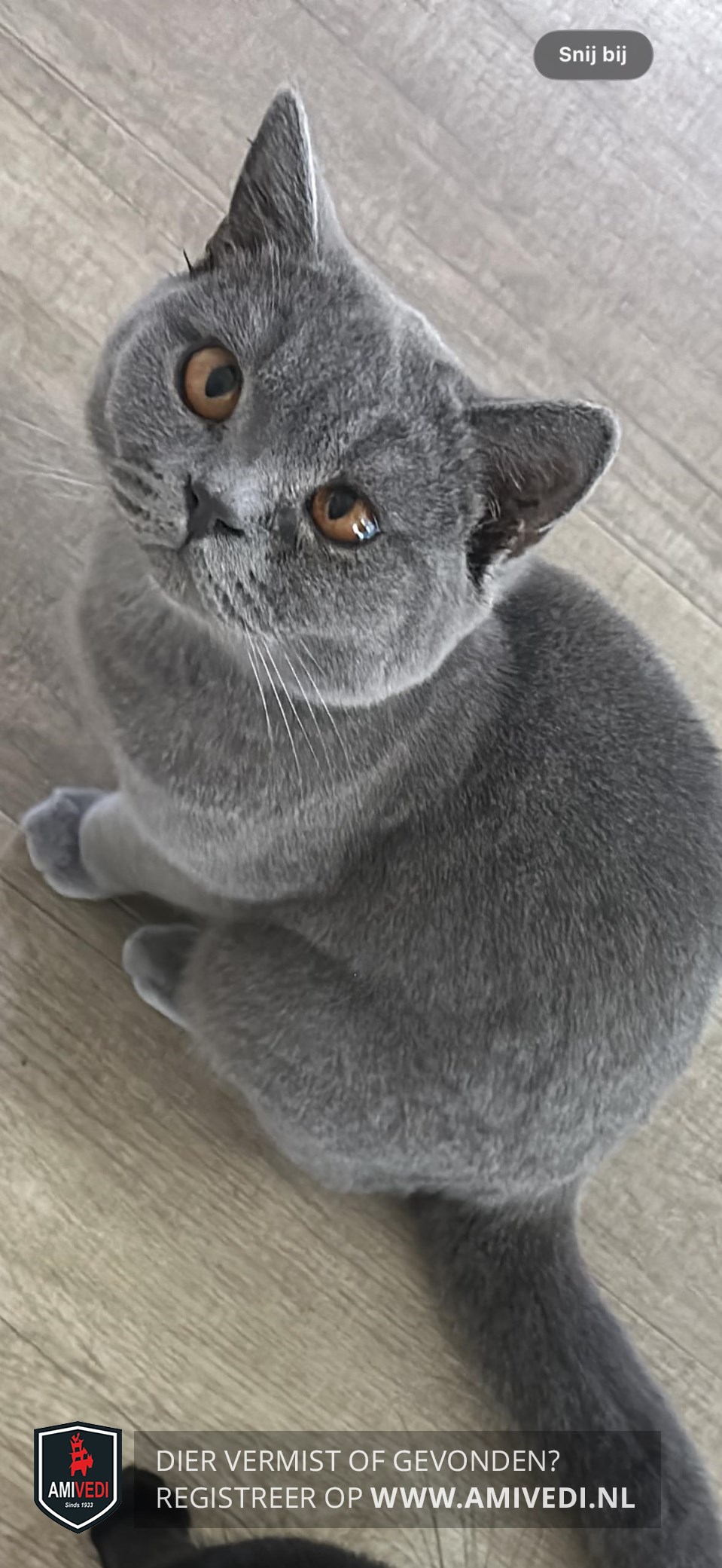 | Signalement | Kleine kat, lichte waas aan de zijkant van linker oog |