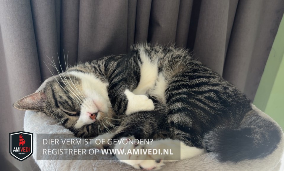 | Signalement | Cypers grijs/zwart met wit. Cypers grijs/zwart/beige bovenop de kop, rondom de ogen en zijkant kop. Witte neusbrug. Rood/bruin neusje. Linker snorhaarkussentje wit, rechter snorhaarkussentje beige. Witte kin, bef, borst en buik. Cypers grijs/zwarte rug, zijflanken en staart. Cypers grijs/zwarte voorpoten met witte voetjes. Cypers grijs/zwarte achterpoten met witte sokken. |