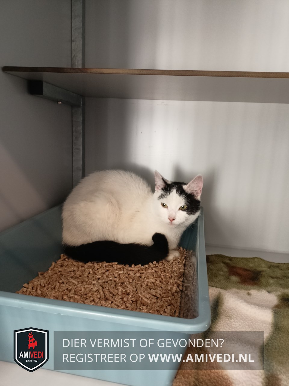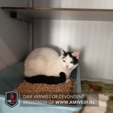 | Signalement | Overwegend wit met wat zwart rond de oren en het linkeroog en een zwarte staart |