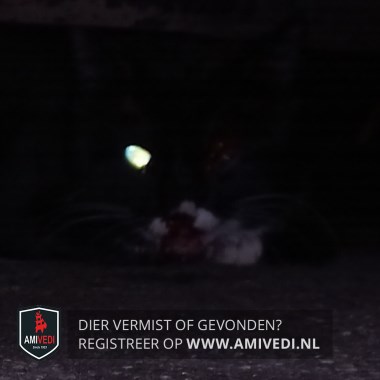 | Signalement | Zwarte kat met wit op bekje, stukje op de neus, wit plekje op de borst en witte teentjes. Is aangereden door een auto in de Bonaventurastraat en we zijn hem verloren op de mijnsherenlaan. SPOED IS GEWOND!! |