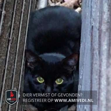 | Signalement | Egaal zwarte kat met groene ogen. |