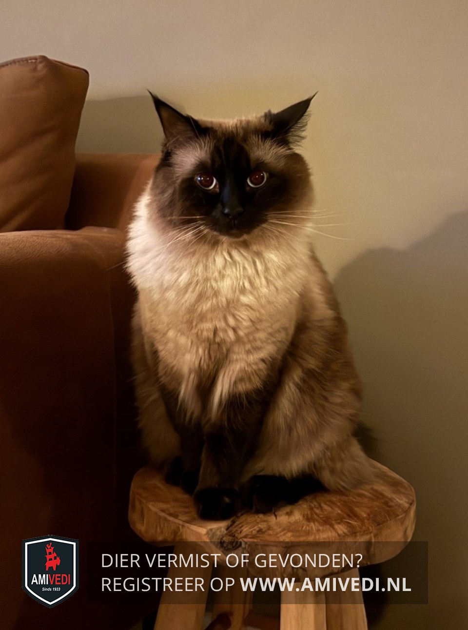| Signalement | Ragdoll, sealpoint. Beige/ bruin lijf met zwart masker, oren, pootjes en staart. |