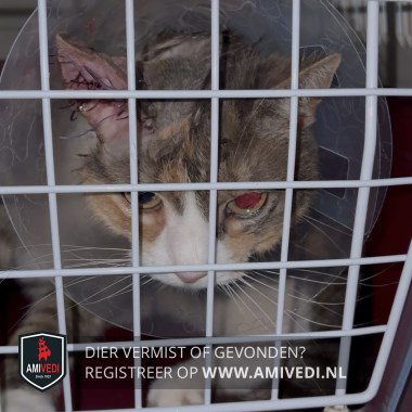 | Signalement | Grijs/rood petje, oren en masker onder de ogen meer rood. Witte bles, neusbrug, roze neus, wit snuitje, kin en bef. Rug grijs gestreept met eits rood erdoor en een rode vlek thv de rechterschouder. Witte voetjes voorpootjes, wit laarsje linker achterpoot. Grijze ringstaart. MIST: rechter achterpoot en is voorzien van nekkraag vanwege recente ooroperatie. |