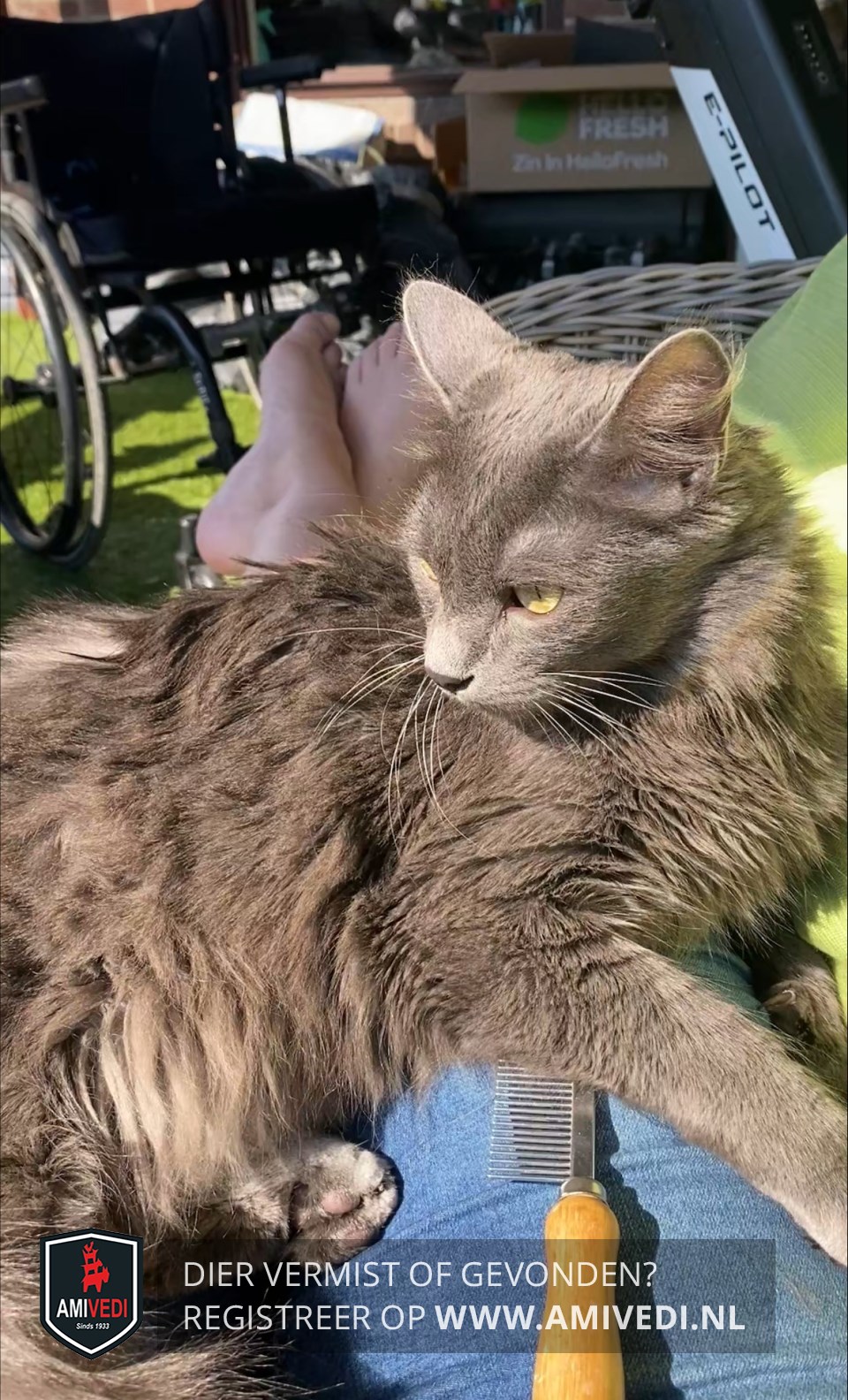 | Signalement | Volledig grijs. Witte snorharen. Hoge poten |