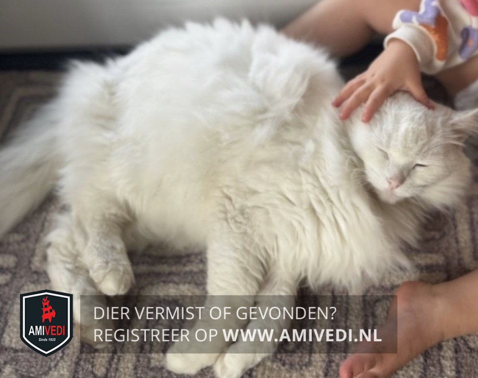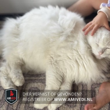 | Signalement | Egaal wit. Met op een aantal plekken wat korter haar. Bijzonderheden: Mooz Hupt met zijn achterpoten als een konijn. |