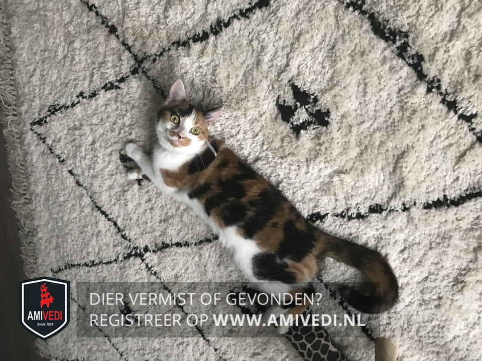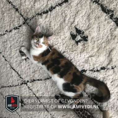 | Signalement | Lapjeskat schichtig , wit in snuitje/hals/borst/ buik/pootjes, rode vlek onder neus. |