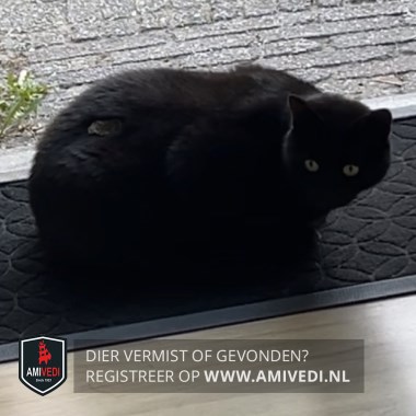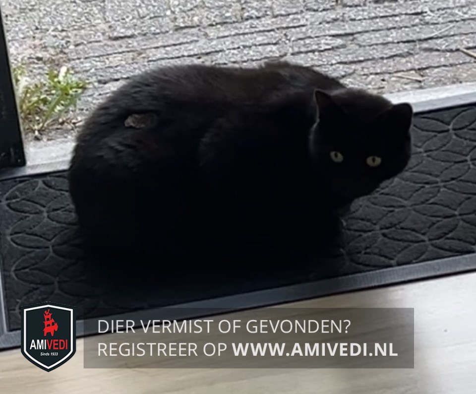 | Signalement | Europese korthaar kater, volledig zwart. Beetje kaal op z'n buik, angstig! |