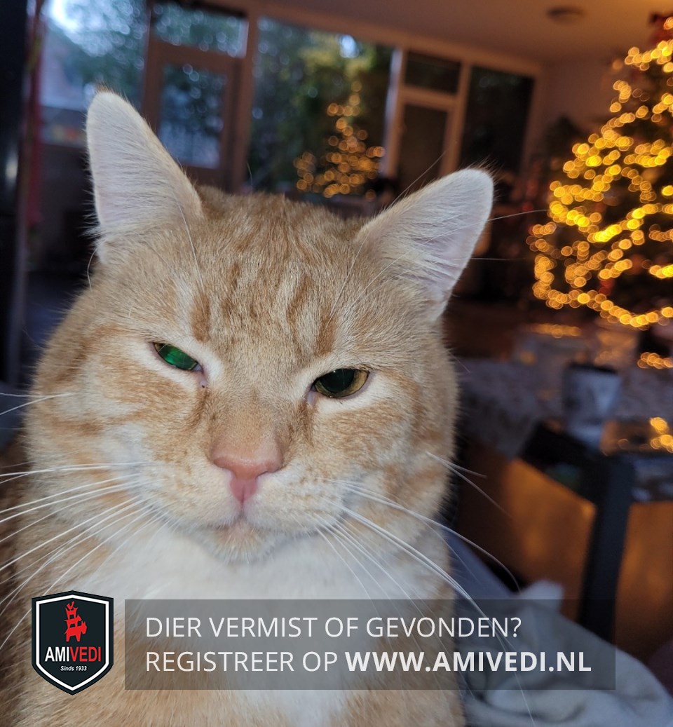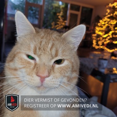 | Signalement | Cypers rood/witte ongecastreerde kater. Licht randje om de oogjes, licht rond het bekje, witte bef. Heel angstig. |