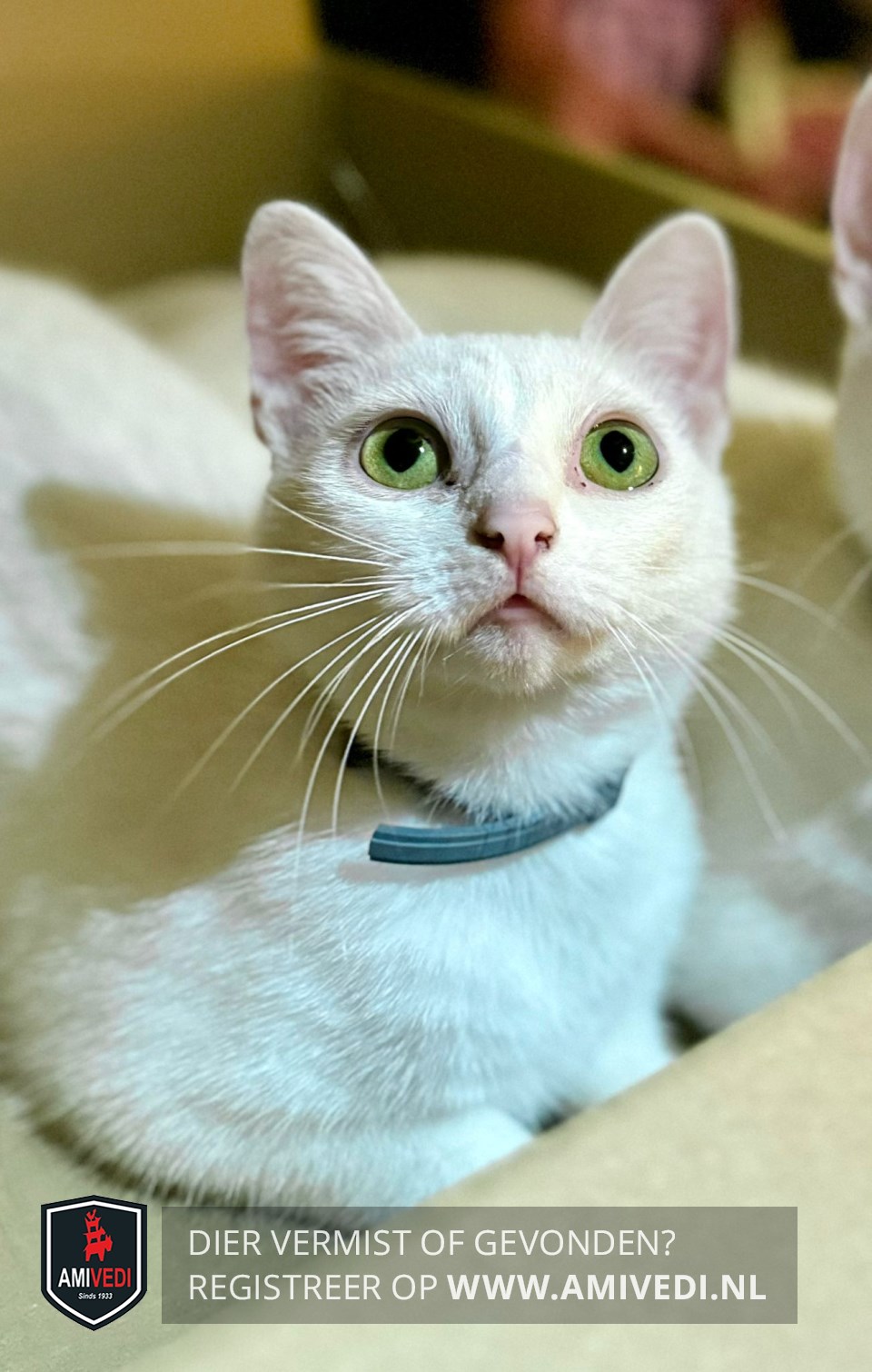 | Signalement | Wit met groene ogen. *Grijs vlooienbandje om. |