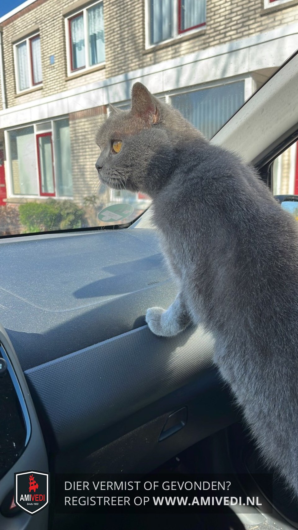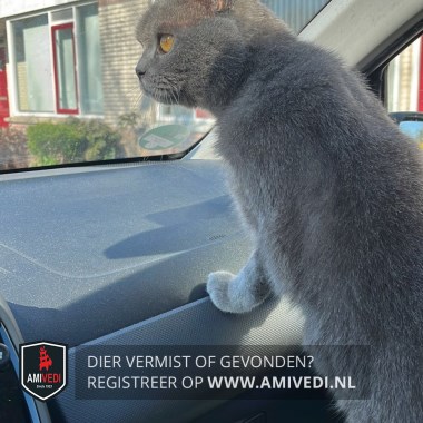 | Signalement | Geheel grijs, beetje gestreepte staart, oranje ogen. |