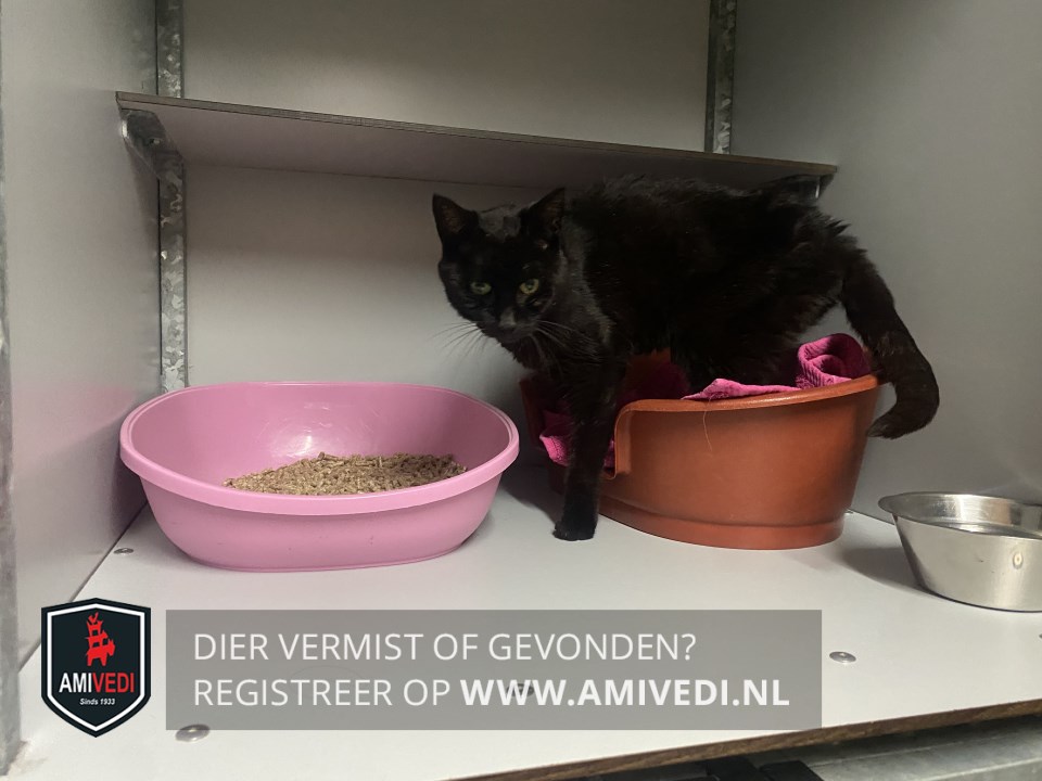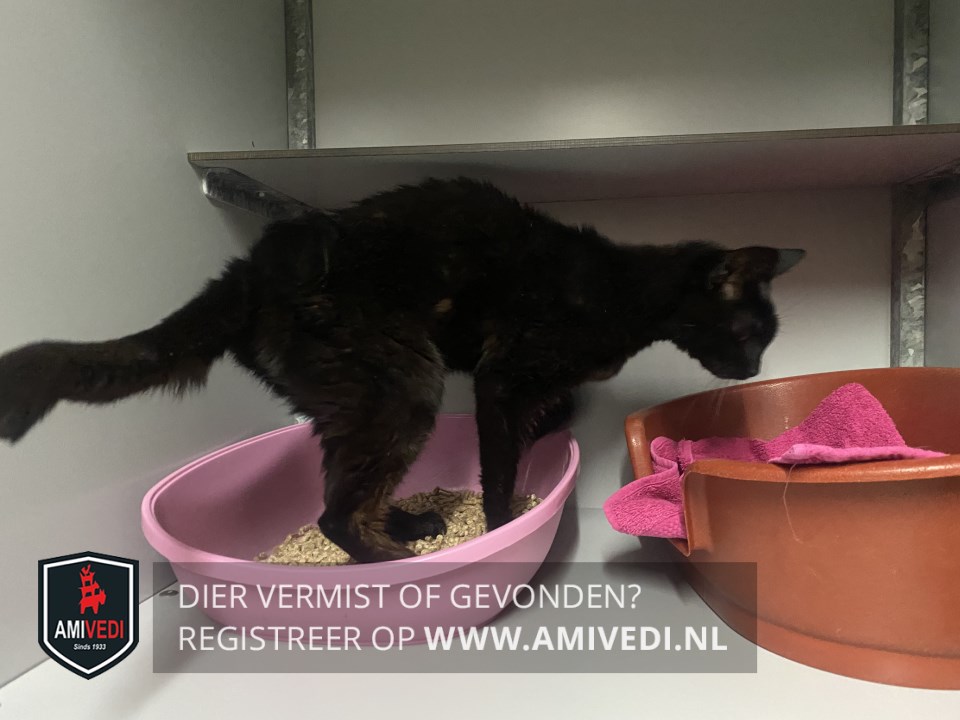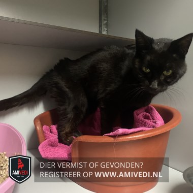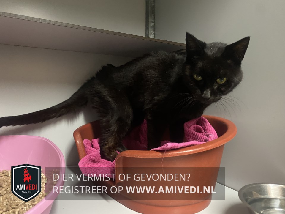 | Signalement | Geheel zwart. Poes op leeftijd. |