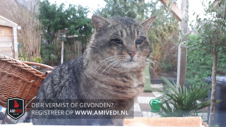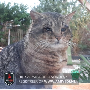 | Signalement | Grijs/zwart getijgerd, witte snorharen, wit bekkie. |