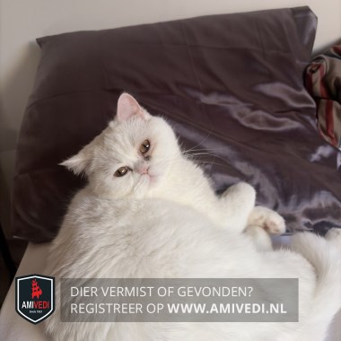 | Signalement | Langharige witte Britse Korthaar met een traanbuis ontsteking, hij heeft een kleine roze neusje , roze voetzooltjes. Hazelbruine ogen. |