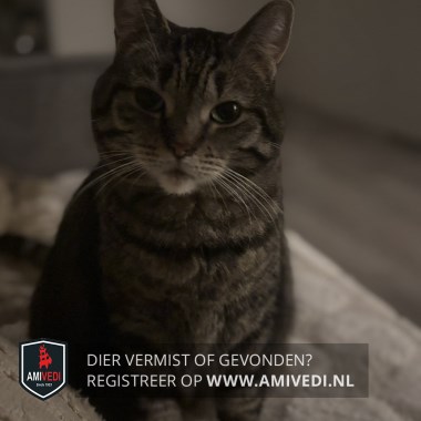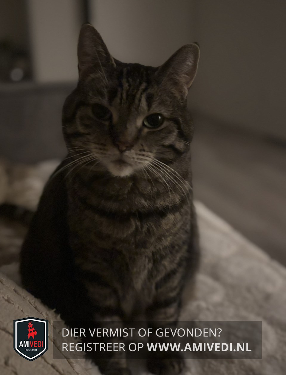 | Signalement | Europese korthaar poes, grijs/bruin met zwart gestreept en wit. Witte snor en witte kin. Senna is doof! |