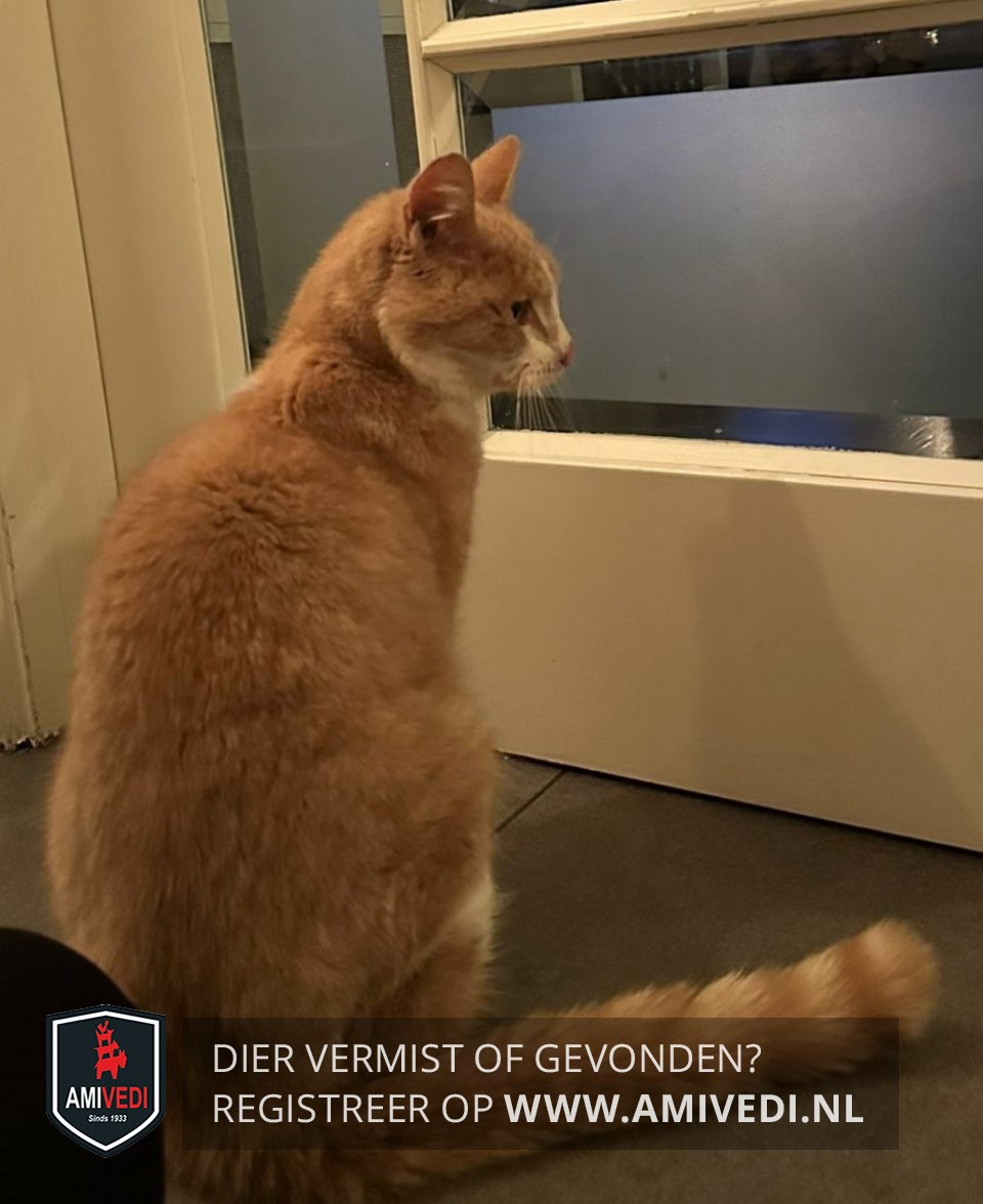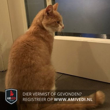 | Signalement | Zalmkleurige kat, buik is wit. In zijn nek een witte streep. Wit bij zijn ogen en neus. |