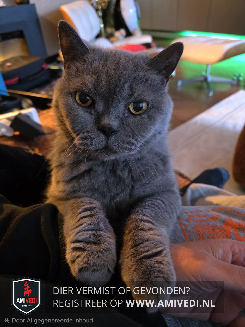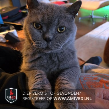 | Signalement | Oude Britse korthaar, loopt soms slecht. Oogjes tranen, hij 'praat' veel. |