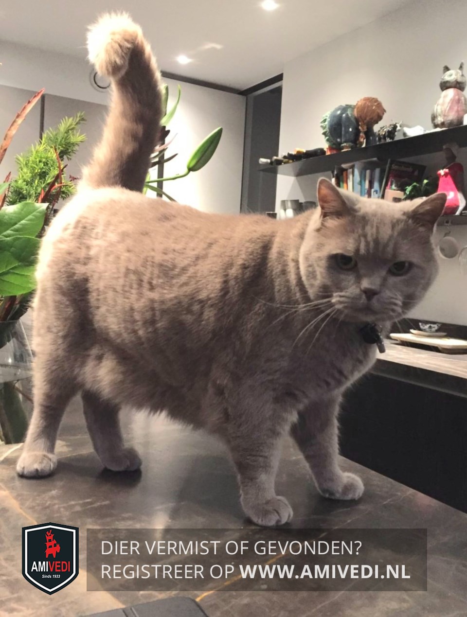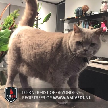 | Signalement | Siem is een rustige oude senior. Geheel grijs. |