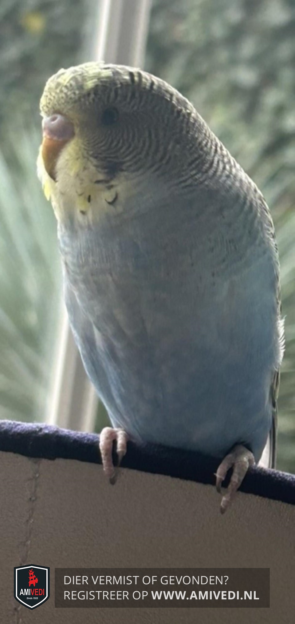 | Signalement | Grasparkiet, lichtgeel kopje met zwarte markering, lichtblauwe borst en buik. |