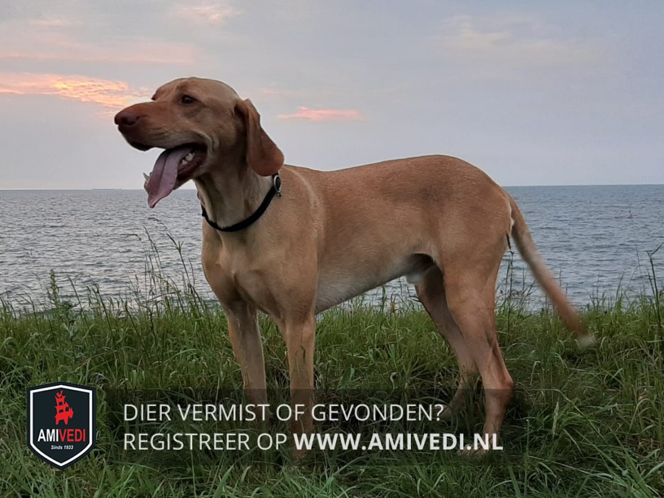 | Signalement | Blond en beige grote hond. Bruinige snoet en oren. |
