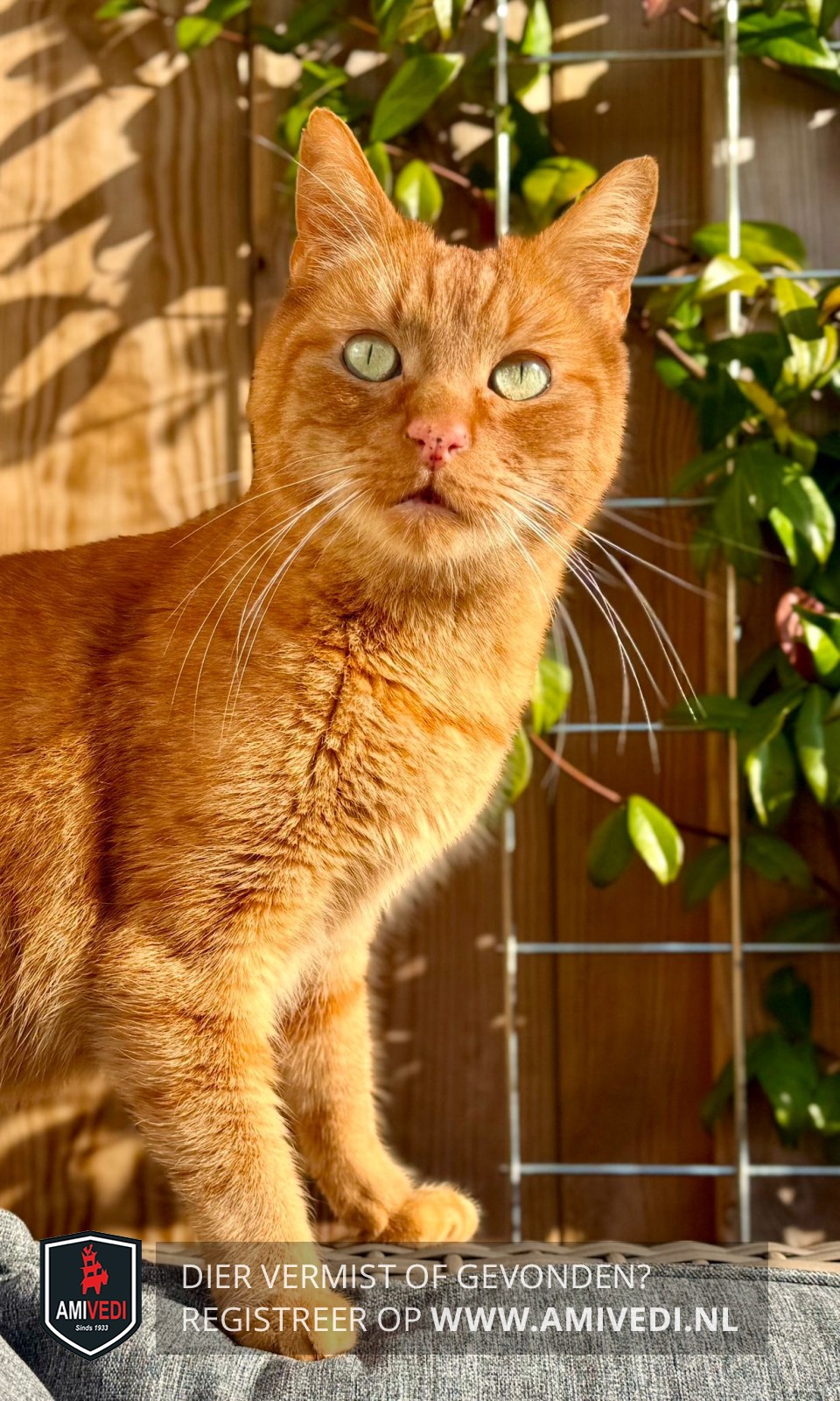| Signalement | Cypers rood. Groene ogen Kin/ borst licht rood. Heeft medicatie nodig! |