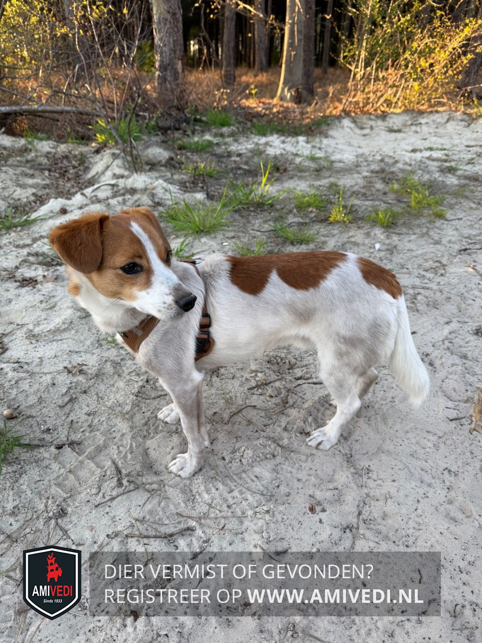 | Signalement | Lijkt op een Jack Russell, iets groter. Wit met rond de ogen en op kop bruin, bruine vlekken op lijfje. |
