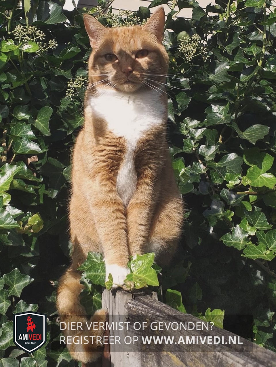 | Signalement | Rood witte poes met grote witte bef. Oranje-bruine ogen |