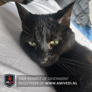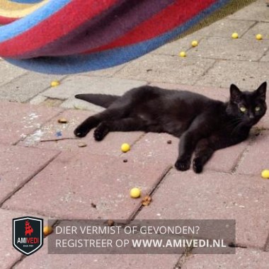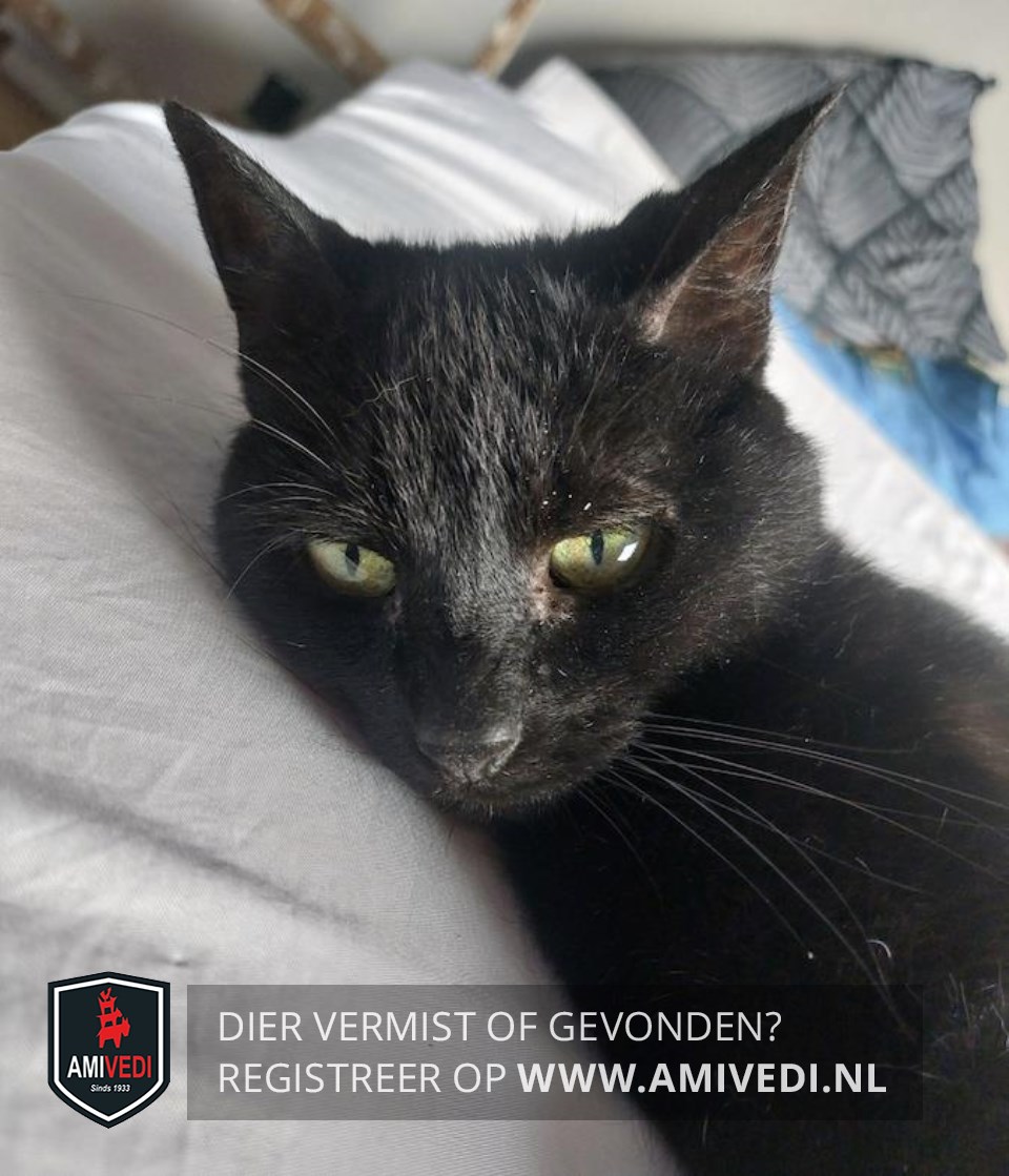 | Signalement | Zwart. Geheel zwarte kat. |